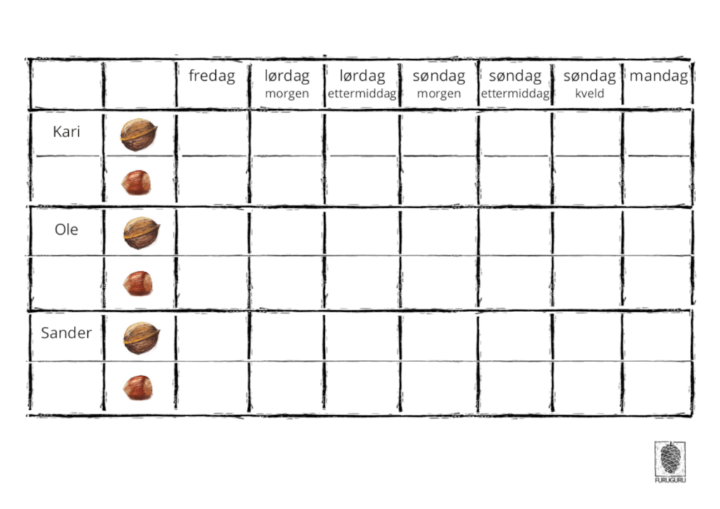 reserve hvis noen kort går tapt. Det er viktig at elevene finner alle 30 nøtter.
