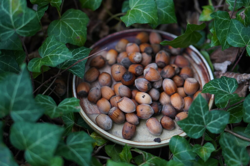 Vi gjemmer kort med bilder av nøtter på et utvalgt sted. Det må være 15 valnøtter og 15 hasselnøtter skjult. De andre bildene er bare for å ha en