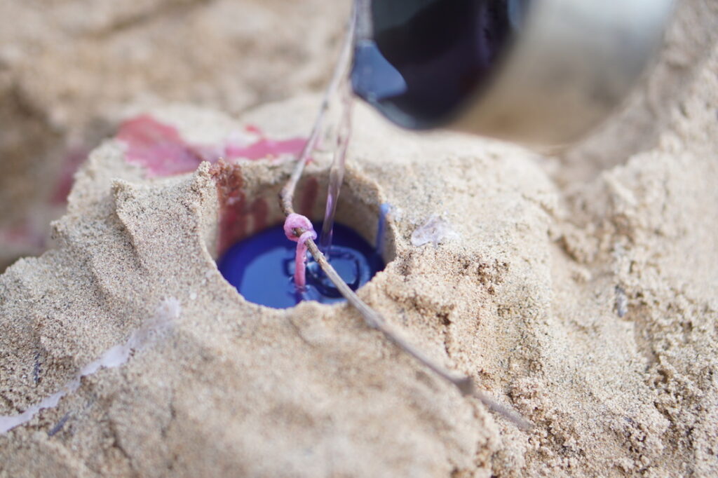 - Det er lurt å smøre veken godt med varm voks – da holder den formen, og det er nok å stikke den rett ned i sanden.